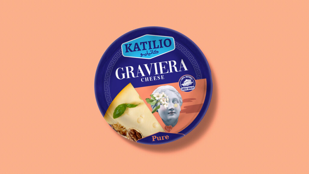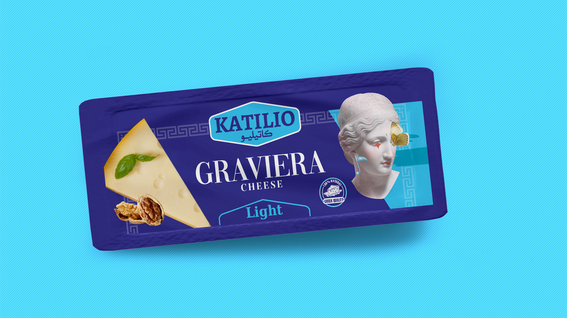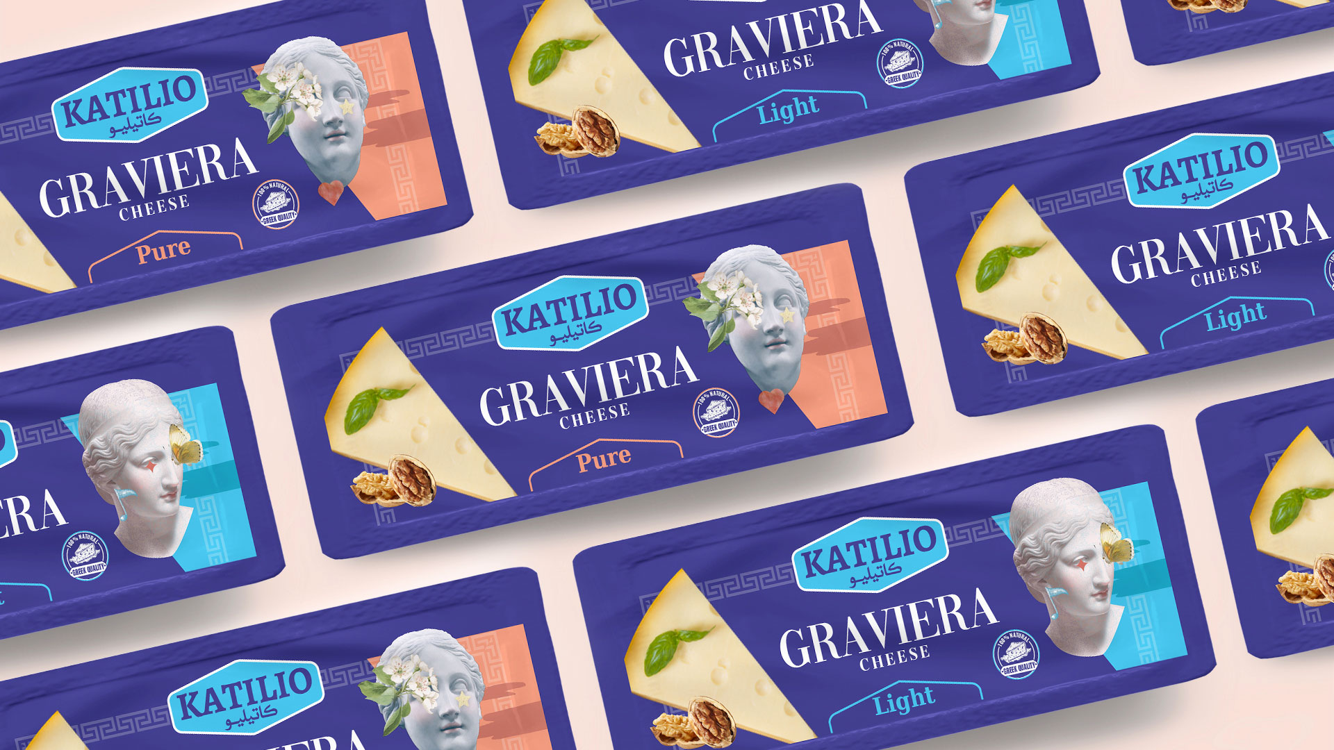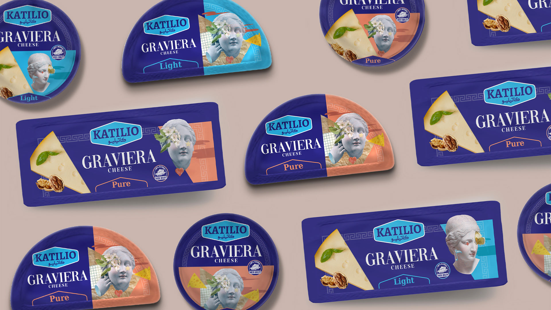 That why we took the risk to use this design school in packaging to cope with the new cheese item and stand out clearly on shelf, using patterns of Greek civilization, and differentiate the variants and flavors by changing the collages and small color area, creating the new brand DNA. by LASHEEN, Hope you appreciate the project.